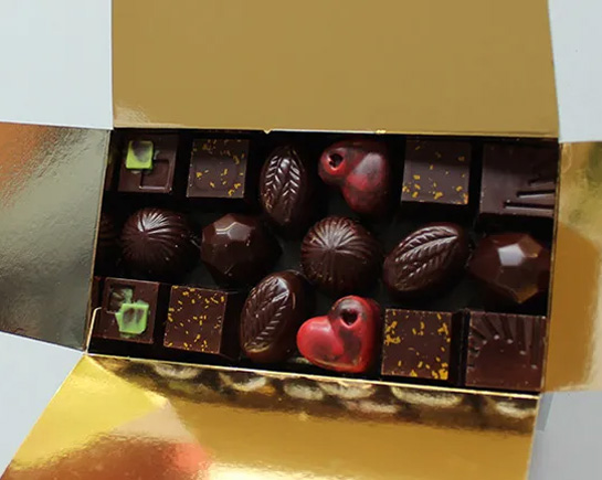 Nos chocolats sont élaborés à partir d’ingrédients de qualité. Confectionnés à la main, ils répondent parfaitement aux exigences de nos consommateurs, nous garantissons leur fraîcheur et leur saveur à la réception de la commande. Nos chocolats peuvent bien évidemment être conservés, mais pas au-delà de quelques semaines car leur fraîcheur n’est pas garantie indéfiniment ! Dégustez nos chocolats à une température ambiante de 20 °C. Vous pouvez conserver nos chocolats dans un endroit sec et frais (18°C) dans leur emballage d’origine, ou bien dans le bac en bas de votre réfrigérateur, après avoir protégé votre coffret dans un sac papier ou plastique (dans ce dernier cas, sortez les chocolats 30 minutes avant de les déguster).